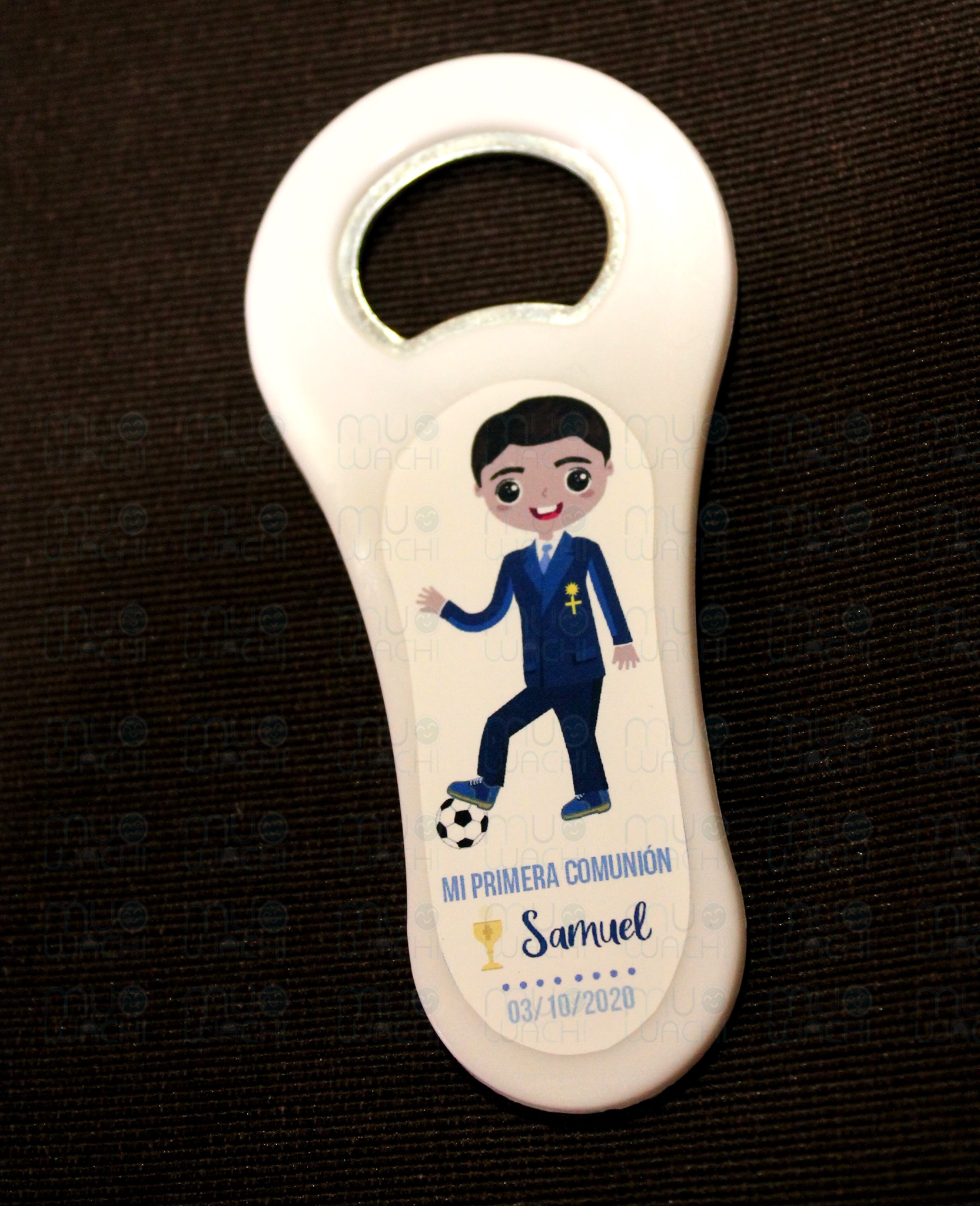 -Se personaliza con papel fotográfico adhesivo en la parte delantera del abridor. La parte trasera dispone de un imán, ideal para pegar en la nevera.