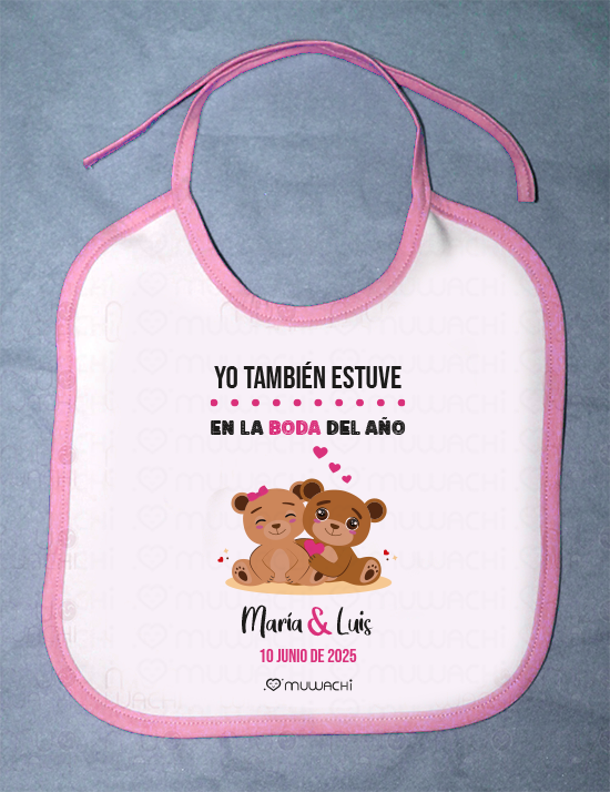 Babero Personalizado para boda con Ositos Enamorados – “Yo También Estuve en la Boda del Año”