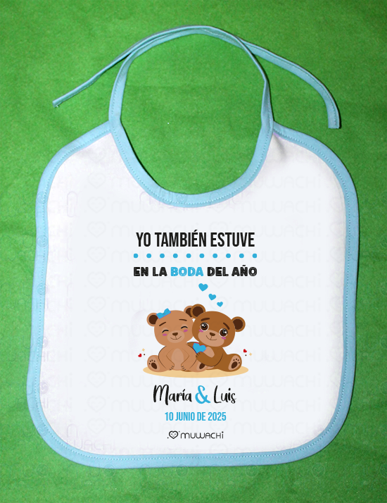 Perfecto para bodas familiares o celebraciones donde se quiere cuidar cada detalle, este babero es una forma de incluir a los más pequeños en la experiencia, reforzando ese ambiente cálido y familiar que hace única a cada boda. Personalízalo fácilmente con los nombres de los novios y la fecha del evento, y regala una sonrisa que durará mucho más allá del gran día.