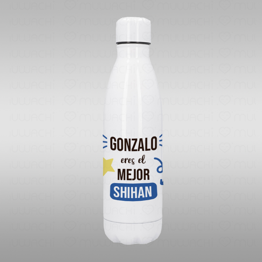 Esta botella termo de agua es el detalle perfecto para expresar gratitud hacia los maestros que nos inspiran cada día. Fabricado con acero inoxidable de alta calidad, este botella no solo es funcional, sino también un símbolo de aprecio y reconocimiento. Su diseño incluye un mensaje personalizado «[Nombre], eres el mejor SHIHAN», transmitiendo un mensaje lleno de cariño y admiración.
