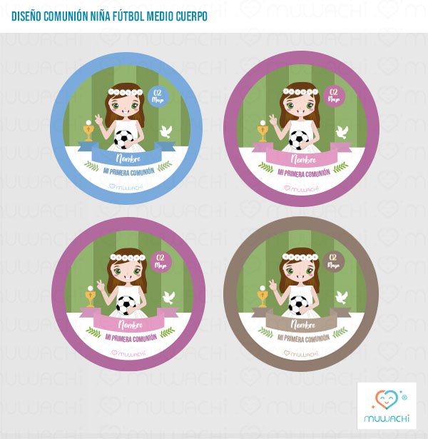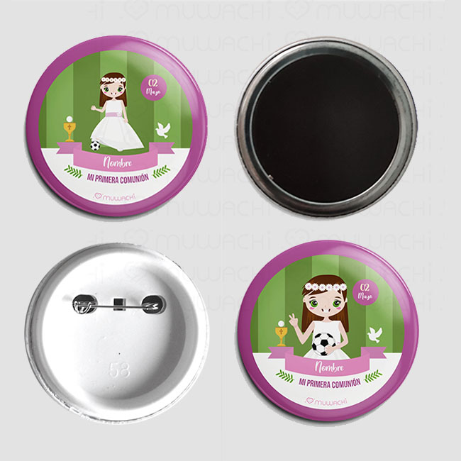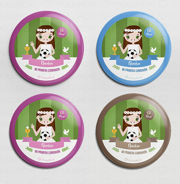 ¡Descubre nuestra exclusiva Chapa comunión niña fútbol con avatar personalizado! Crea un recuerdo único eligiendo el color y tipo de pelo, color de ojos y piel del niño o niña. Personaliza el modelo y color del traje para un toque aún más especial. Añade el nombre y la fecha del evento para un detalle inolvidable. Pedido mínimo 10 unidades.