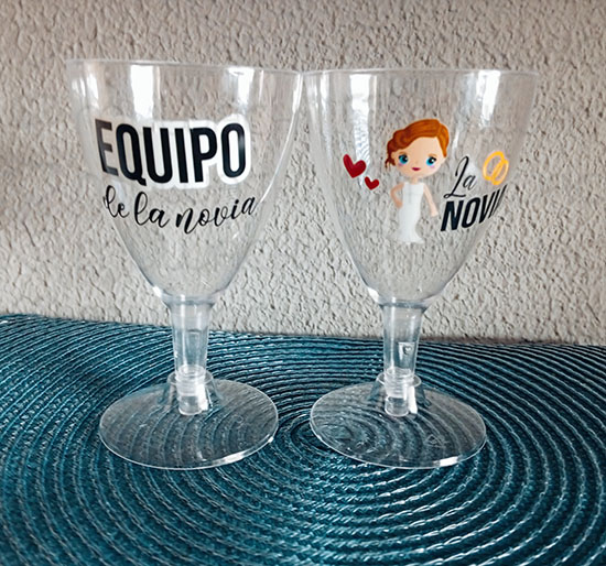 El pack incluye 10 copas (1 para la novia y el resto para el equipo). El pack de 10 unidades sale a 38,50 euros. IVA incluido (Precio de envío aparte)