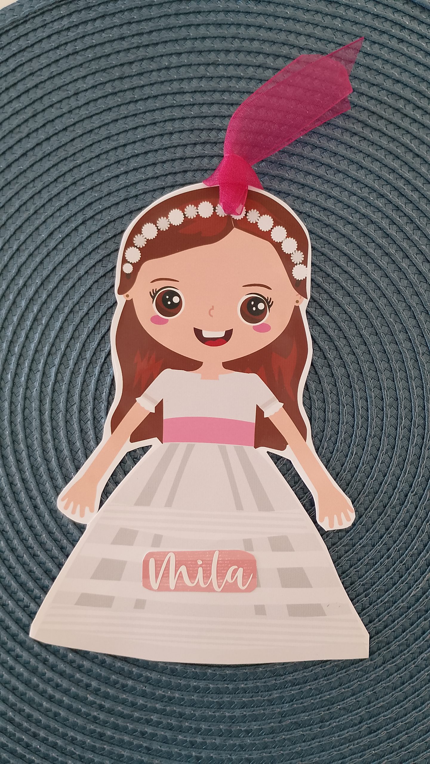 ¿Quieres una decoración perfecta para la comunión de tu niñ@? No sabes como decorar las mesas? Hemos creado esto especialmente para ti: Kit 3 en 1, marcasitios, minuta y marcapáginas. Pedido mínimo 15 unidades.