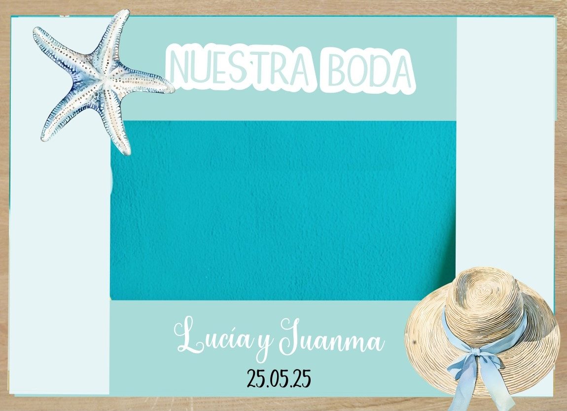 Si haces una boda íntima y te gustaría tener una decoración elegante, te proponemos nuestro Marco Photocall personalizado Bodas, ideal para pasar de mesa en mesa y hacer unas fotos divertidas. Temática mar, pero si te gusta otra temática haznoslo saber y lo estudiamos.
