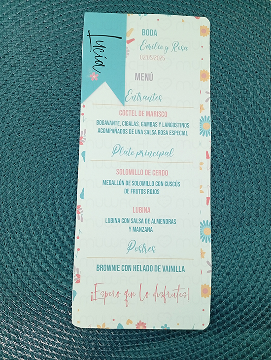 Recuerdo especial: Más que un menú, es un detalle que tus invitados podrán conservar como recuerdo de un día único.