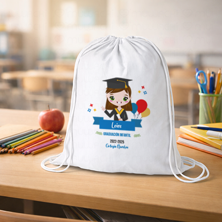 ¡Descubre nuestra exclusiva Mochila personalizada de graduación de cuerdas! Crea un recuerdo inolvidable con nuestro avatar personalizable: elige el tipo y color de pelo, color de ojos y piel (Escribe la personalización en comentarios) o elige un modelo estándar, pudiendo personalizar el nombre del estudiante que se gradúa.