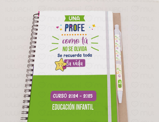 Cada producto del pack puede ser personalizado con detalles únicos como colores, nombres o incluso ilustraciones especiales. Desde una botella térmica ideal para mantener las bebidas calientes o frías hasta una libreta elegante para anotar ideas, este pack combina funcionalidad con un toque personal que hará que el profesor se sienta realmente especial.