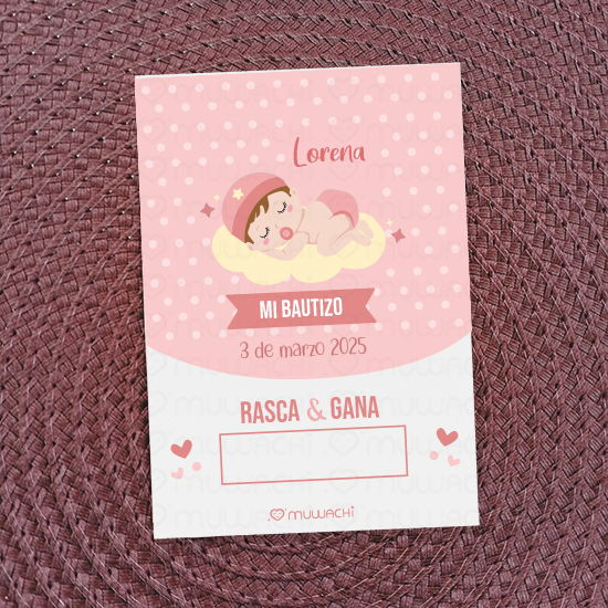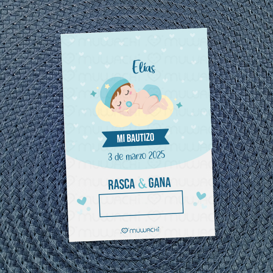 Tarjetas Rasca y gana personalizadas Bautizo de Bebé